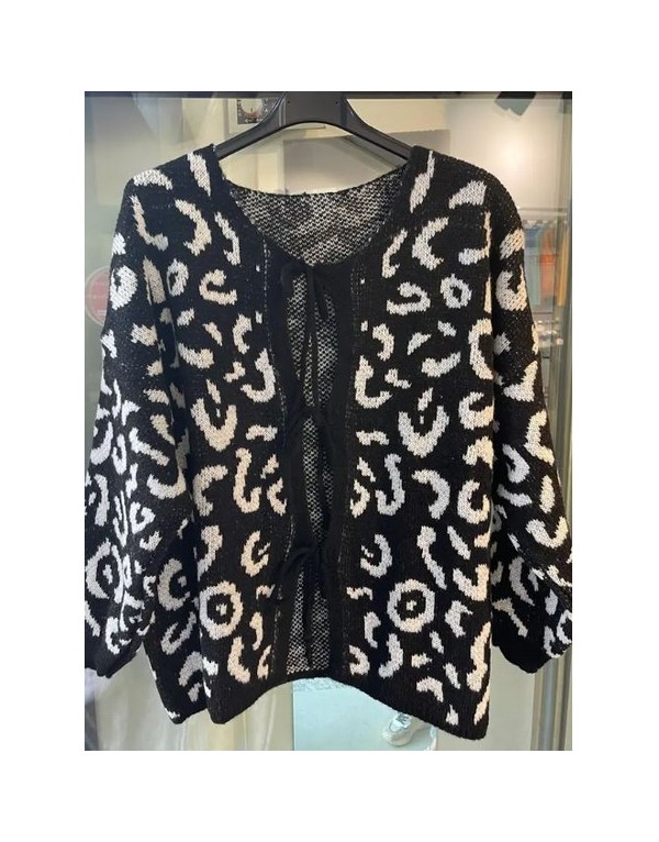 COLLECTION ITALIENNE CARDIGAN FEMME imprimé léopard à liens noués noir