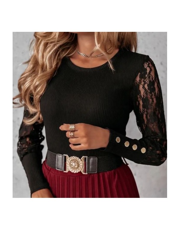 Féminin, chic et subtilement audacieux, ce top noir met en valeur la silhouette grâce à ses manches en dentelle florale semi-transparente